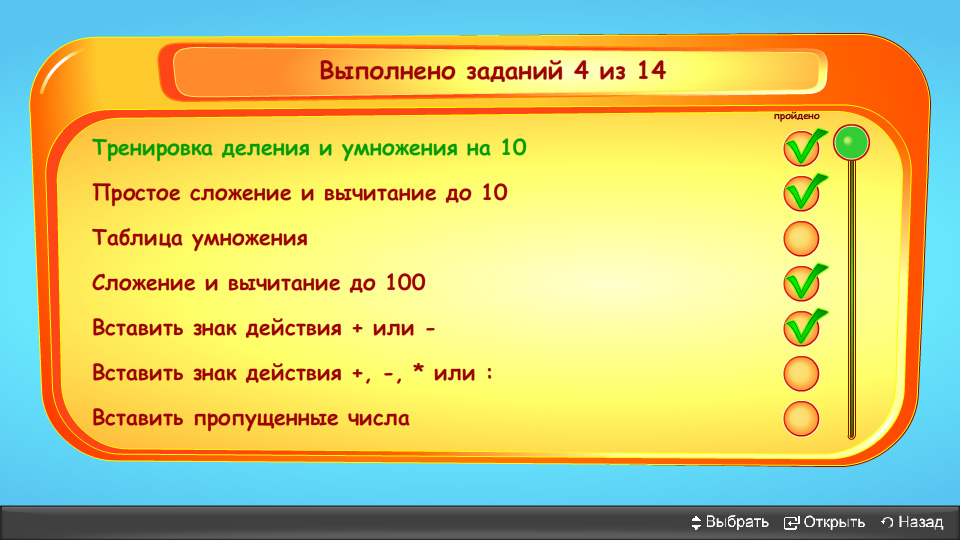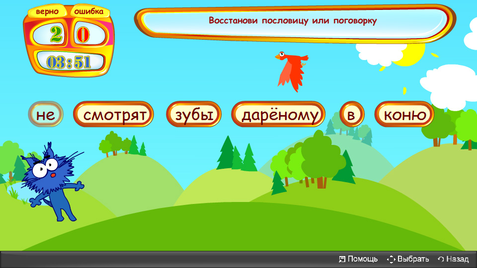 Is a collection of 40 playable exercises for learnig and improving knowledge of russian launguage, mathematics and nature.